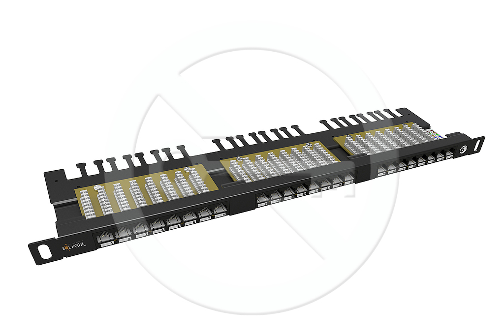 Patch panele SOLARIX oznaczone SX24HD-6-UTP-SL to wysoko zagęszczone 19 "patch panele o wysokości 0,5U, które są wyposażone w 24 porty RJ45 oraz dualne złącza IDC 110 / Krone. W panelach tych, kładzie się nacisk na maksymalne oszczędności miejsca w szafie rackowej stąd w wysokości 1U można łatwo zainstalować do 48 portów. Panele te są dostępne w wersji ekranowanej jak i nieekranowanej i bezproblemowo spełniają wymagania określone w międzynarodowych standardach ANSI / TIA / EIA 568, ISO / IEC 11801 i EN 50173, w tym wszystkie najnowsze dodatki do kategorii 6. Panele zostały zaprojektowane jako solidne, niezawodne rozwiązanie zapewniające maksymalną wydajność i pozwalające na łatwy montaż. Częścią korpusu jest wspornik, który umożliwia pewne zamocowanie i przejrzyste ułożenie kabli. Wersja nieekranowana tego panela wykonana jest ze stali malowanej na czarno.