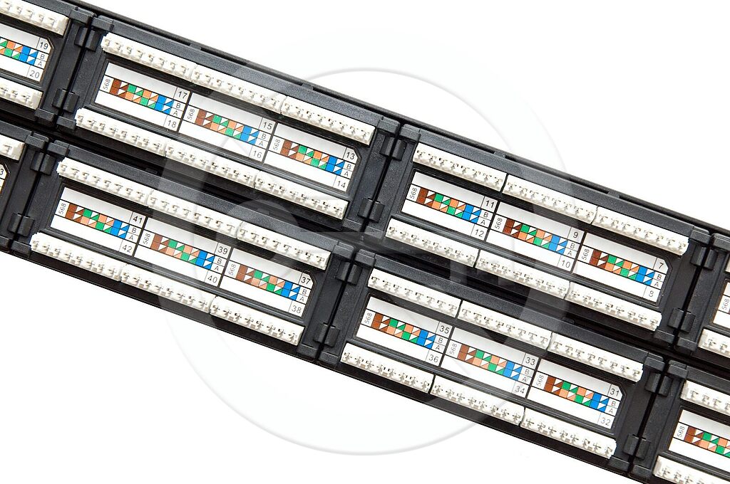 Nieekranowany patch panel CAT5E 48 portów testowany do 150 MHz, czarny.