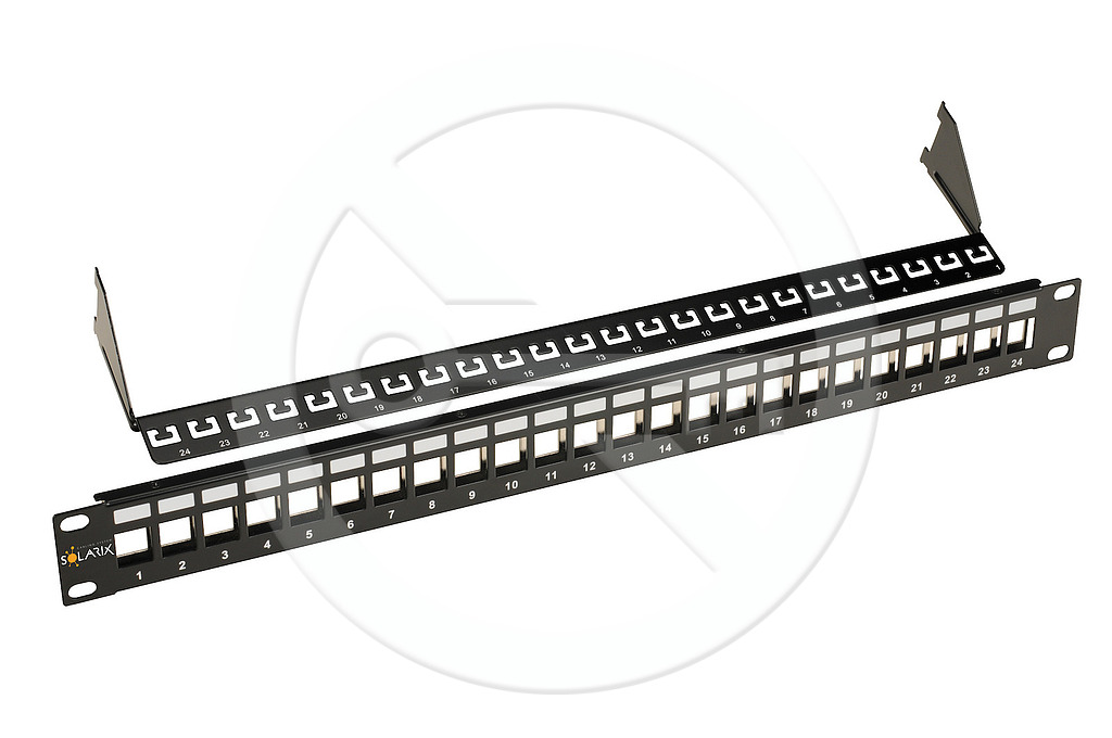 • Product 19" uniwersalny modularny nieobłożony patch panel Solarix 24 porty 1U czarny SX24M-0-STP-BK-UNI - Solarix - Patch panele