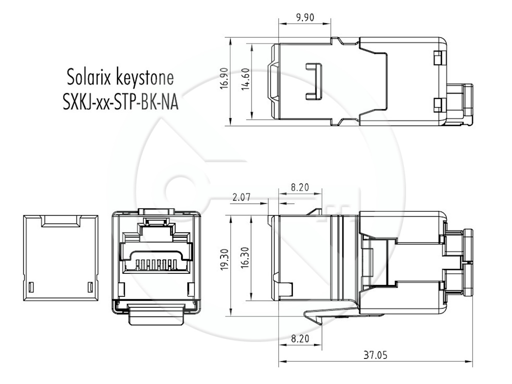 • Product Szybko-zaciskowy keystone Solarix CAT6 STP RJ45 czarny SXKJ-6-STP-BK-NA do kleszczy SXKJ-NA-BU - Solarix - Keystony