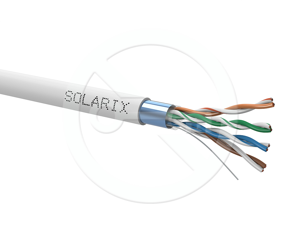 Kabel instalacyjny Solarix z oznaczeniem SXKD-5E-FTP-PVC jest niezawodną częścią składową serii produktowej Solarix – kategoria 5E. Wspólnie z pozostałymi komponentami systemu okablowania strukturalnego Solarix stwarza rozwiązanie, które zapewnia długi czas użytkowania, maksymalną wydajność i bezproblemowy ruch sieci komputerowej. Kable instalacyjne Solarix – kategoria 5E są przeznaczone dla przewodów horyzontalnych i są oferowane w wersji ekranowej i nieekranowanej z różnym typem osłony - tj. PVC (klasa reakcji na ogień Eca), LSOH (klasa reakcji na ogień Dca s1 d2 a1) lub UV stabilne PE (klasa reakcji na ogień Fca). Kabel ten bez problemów spełnia wymagania definiowane w standardach międzynarodowych ANSI/TIA 568, ISO/IEC 11801 i EN 50173 dla kategorii 5E i klasy przewodów Class D, włącznie z wszystkimi najnowszymi dodatkami. Parametry użytkowe tego kabla zostały sprawdzone przez niezależne laboratorium badawcze FORCE TECHNOLOGY w ramach programu EC Verified na najwyższym poziomie, tzw. Component Level. Certyfikat jest dostępny tutaj na stronie internetowej w zakładce "Do pobrania" lub bezpośrednio na stronie laboratorium FORCE. W przypadku CPR (Rozporządzenie UE 305/2011), kabel jest badany w systemie oceny parametrów AVCP 3. Podobnie jak w innych kablach Solarix, kabel SXKD-5E-FTP-PVC posiada znaczniki długości co 1 m. od 0 do 500 m i jest nawinięty na solidną drewnianą szpulę, która zawiera wszystkie wszystkie niezbędne informacje o produkcie w tym kody kreskowe, numer produkcyjny oraz główne parametry techniczne.