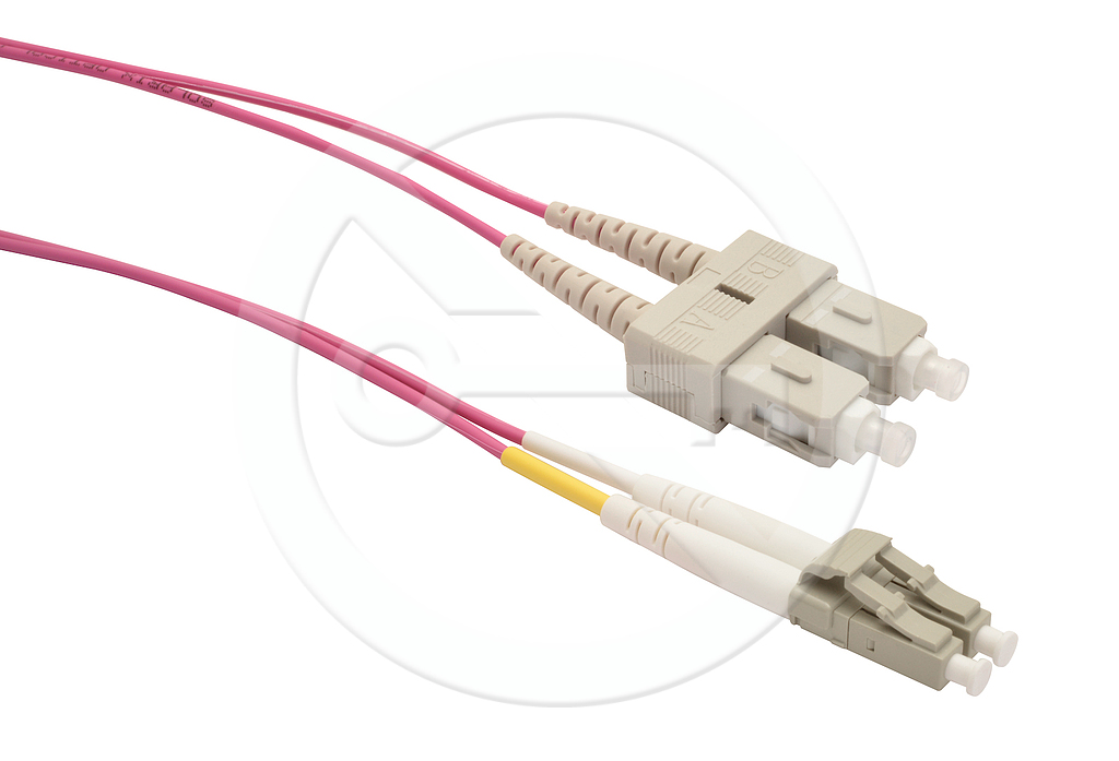 Patchcord światłowodowy z włóknem OM4 i konektorami LCpc/SCpc długość 3m.