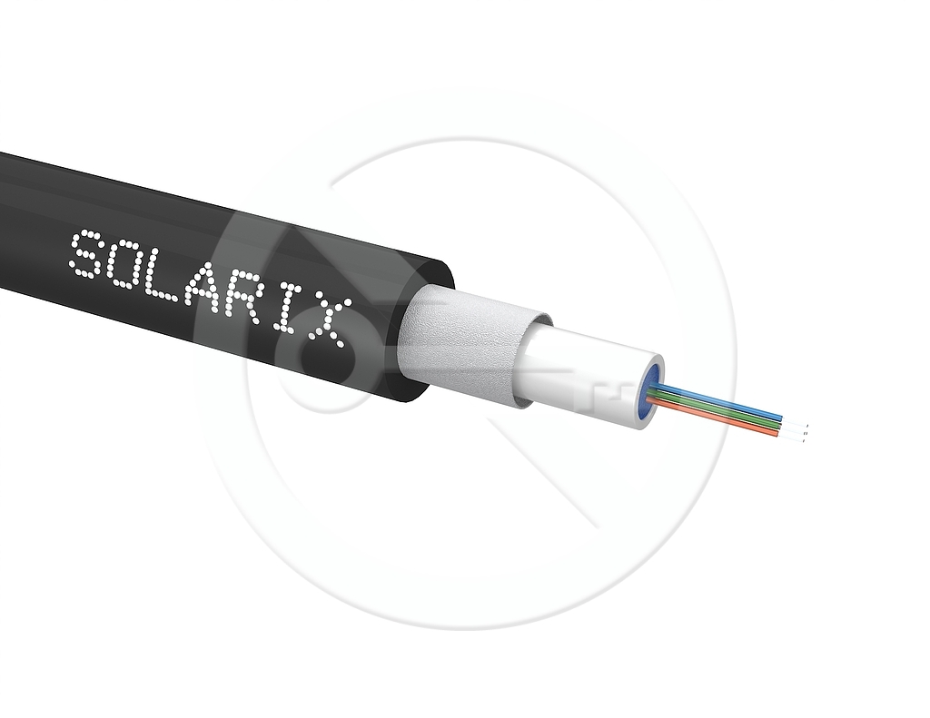 Uniwersalny kabel światłowodowy SOLARIX SXKO-CLT-4-OM3-LSOH klasa reakcji na ogeń Eca nadaje się do instalacji zarówno wewnętrznych jak i zewnętrznych. Zewnętrzny płaszcz kabla typu LSOH (zawiera skłądniki odporne na promieniowanie UV) oznacza nie rozprzestrzenianie halogenu podczas pożaru. Włókna znajdują się w centralnej tubie wypełnionej żelem, dzięki czemu są one chronione przed wpływem wody. Kabel optyczny nie zawiera elementów metalowych i jest w pełni dielektryczy. W produkcji użyto włókien G.651.1. Szczegółowe informacje o kablu i włókien podano w zakładce Parametry techniczne.