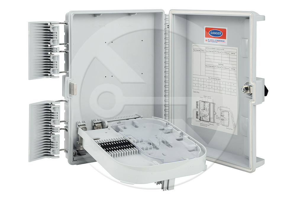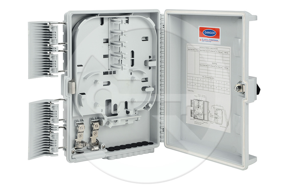 Przełącznica naścienna przeznaczona do zakończenia kabli światłowodowych instalacji zewnętrznych jak i wewnętrznych zapewniająca stopień ochrony IP65. Wykonana została z materiału odpornego na promieniowanie UV. Montowana może być na słupie, lub przy zastosowaniu zestawu montażowego bezpośrednio na ścianie. W przełącznicy możliwe jest zakończenie do 16 włókien w kombinacji 16 adapterów SC simplex lub 16 adapterów LC duplex. Częścią przełącznicy jest uchylna przegroda ułatwiająca ułożenie pigtaili. Przełącznica dostarczana jest z dwoma kluczami umożliwiającymi zamykanie puszki zabezpieczając przed przypadkowym otwarciem. Częścią konstrukcyjną są dwa zaczepy zapewniające solidny docisk na