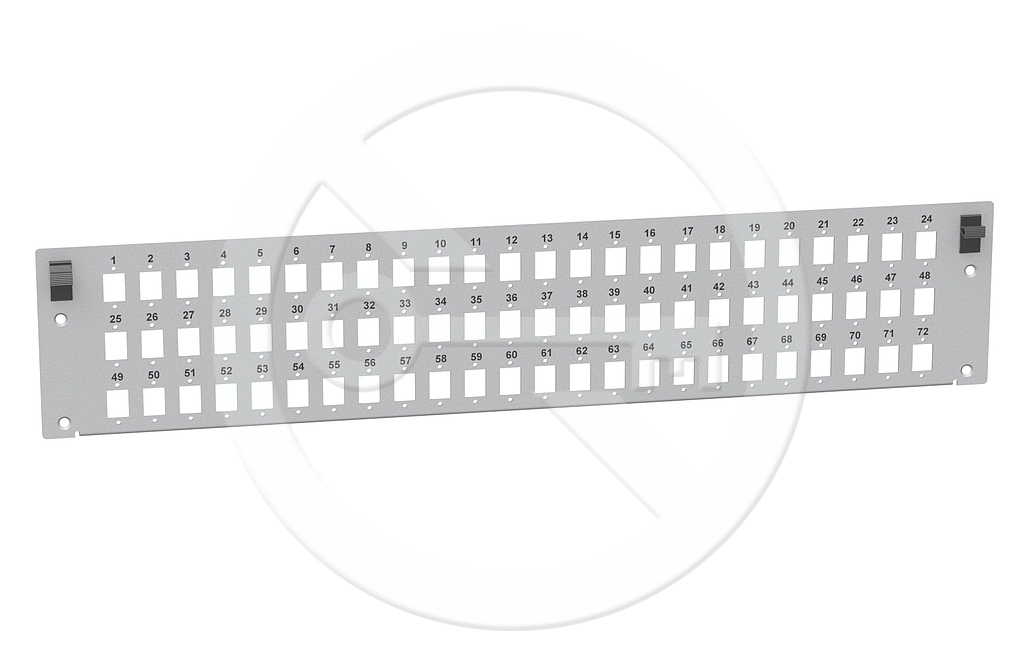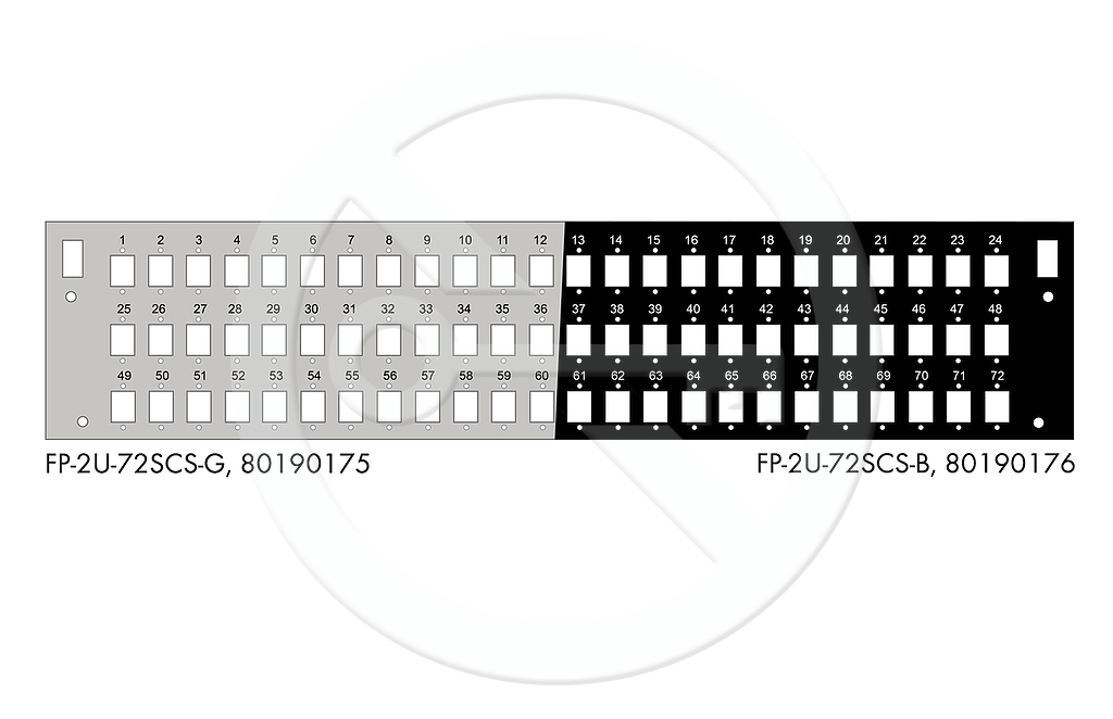 Panel mogący pomieścić do 72 adapterów SC. Pasuje do przełącznic o numerach 86010305 i 86010307.