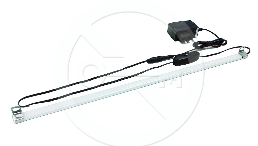 Jednostka oświetleniowa składa się z paska LED osadzonego na aluminiowym wsporniku montowanym do szyny rack 19".