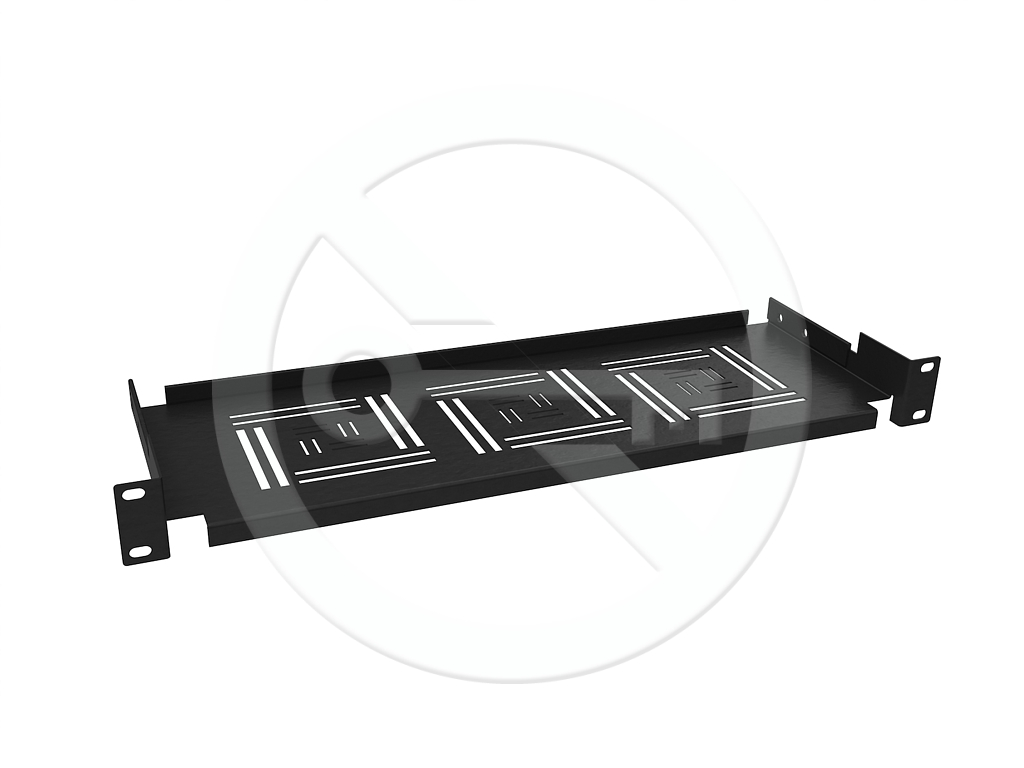 Półki służą do przechowywania w szafach sprzętu i akcesoriów wszędzie tam gdzie nie ma możliwości zamocowania do szyn 19". Mocowane są do przednich lub tylnich szyn w dwóch miejscach. Perforowane dno poprawia obieg powietrza.