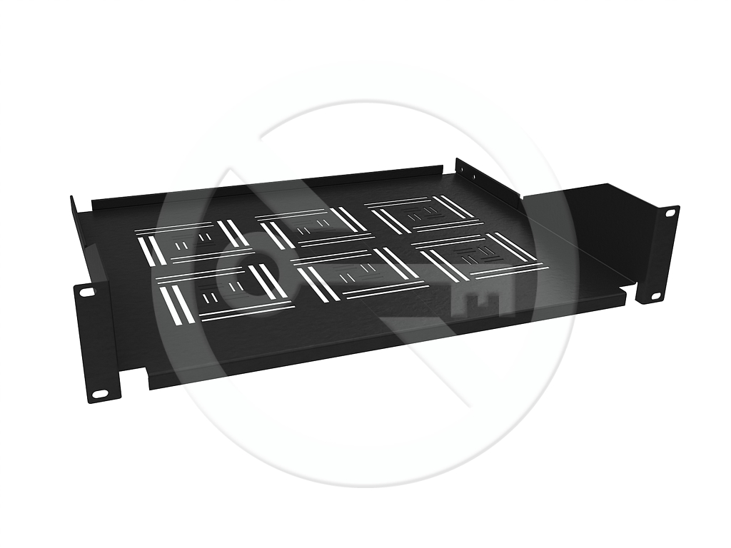 Półki służą do przechowywania w szafach sprzętu i akcesoriów wszędzie tam gdzie nie ma możliwości zamocowania do szyn 19". Mocowane są do przednich lub tylnich szyn w dwóch miejscach. Perforowane dno poprawia obieg powietrza.