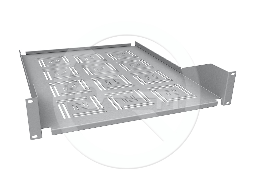 Półki służą do przechowywania w szafach sprzętu i akcesoriów wszędzie tam gdzie nie ma możliwości zamocowania do szyn 19". Mocowane są do przednich lub tylnich szyn w dwóch miejscach. Perforowane dno poprawia obieg powietrza.