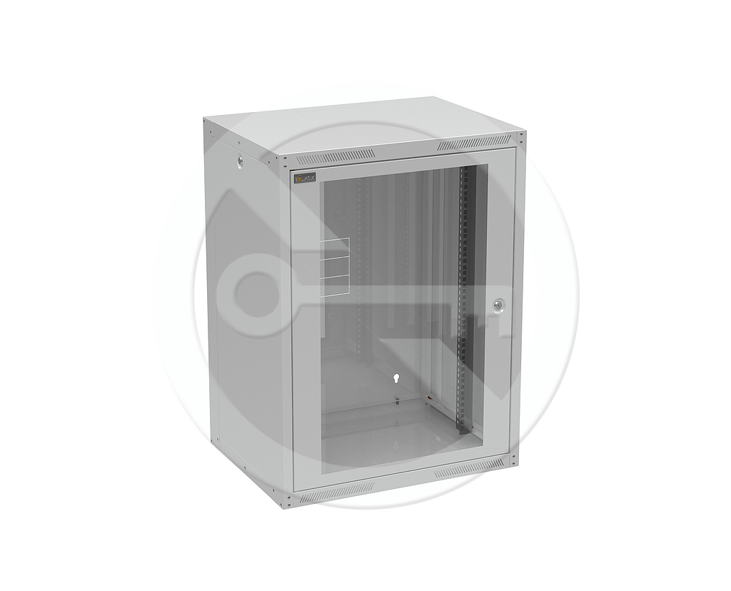 Naścienna szafa nitowana GrandN DUO 16U z drzwiami szklanymi, glębokość 450 mm