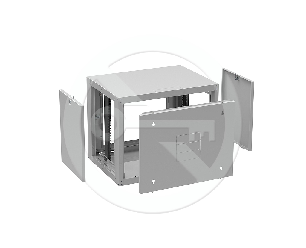 Naścienna szafa rack GrandN DUO to solidna, nitowana obudowa, która została zaprojektowana z myślą o wysokiej wartości użytkowej i konkurencyjnej cenie. GrandN DUO oferuje dostęp do zainstalowanej technologii nie tylko przez przednie drzwi, ale także przez zdejmowane, zamykane boki. Przednie drzwi i boki są wyposażone w zamek z dwoma identycznymi kluczami. W celu ułatwienia wentylacji wewnętrznego sprzętu, w górnej i dolnej pokrywie szafy znajdują się perforacje. Przepusty kablowe znajdują się w otworach wybijanych w suficie i dnie szafy.