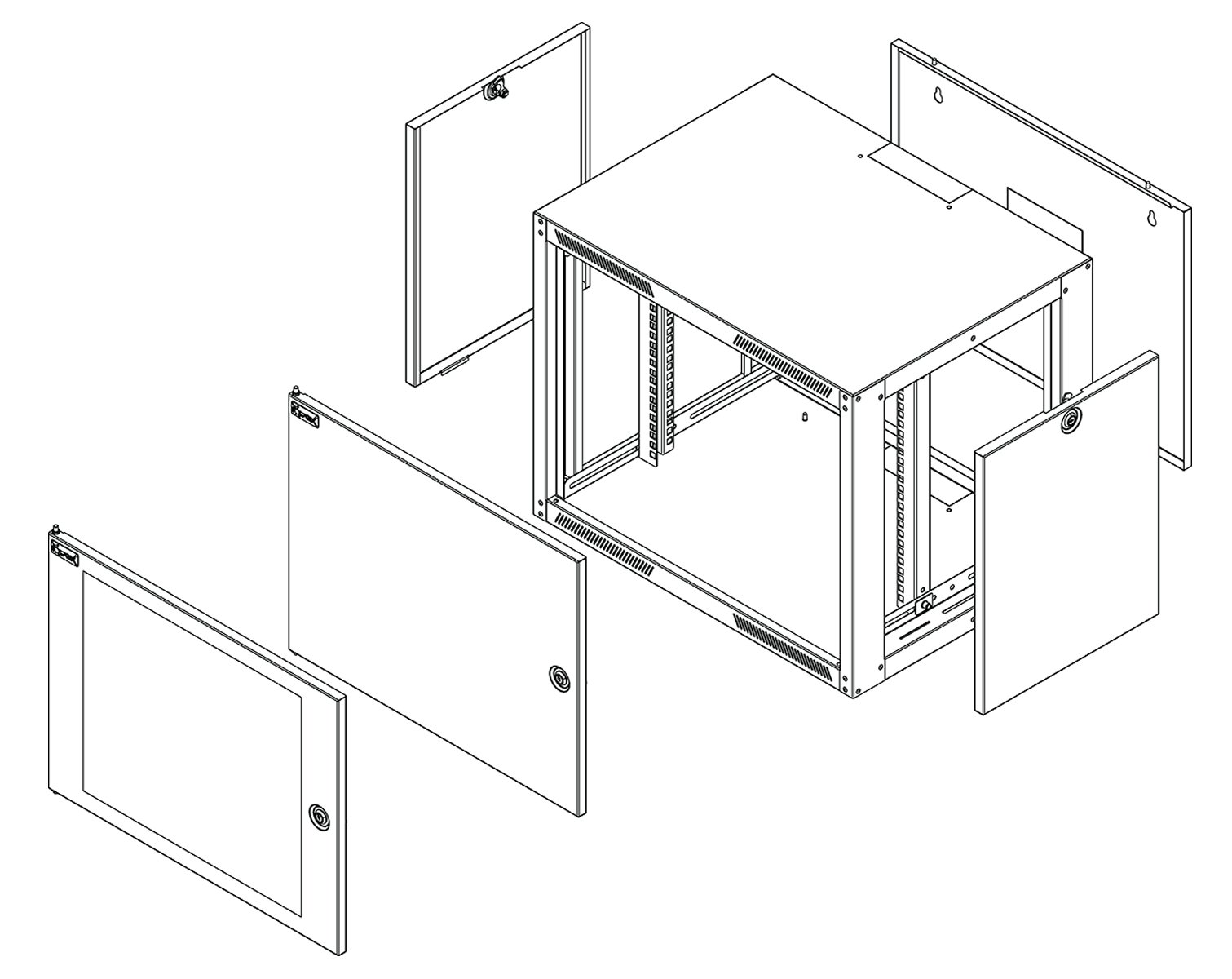 Naścienna szafa rack GrandN DUO to solidna, nitowana obudowa, która została zaprojektowana z myślą o wysokiej wartości użytkowej i konkurencyjnej cenie. GrandN DUO oferuje dostęp do zainstalowanej technologii nie tylko przez przednie drzwi, ale także przez zdejmowane, zamykane boki. Przednie drzwi i boki są wyposażone w zamek z dwoma identycznymi kluczami. W celu ułatwienia wentylacji wewnętrznego sprzętu, w górnej i dolnej pokrywie szafy znajdują się perforacje. Przepusty kablowe znajdują się w otworach wybijanych w suficie i dnie szafy.