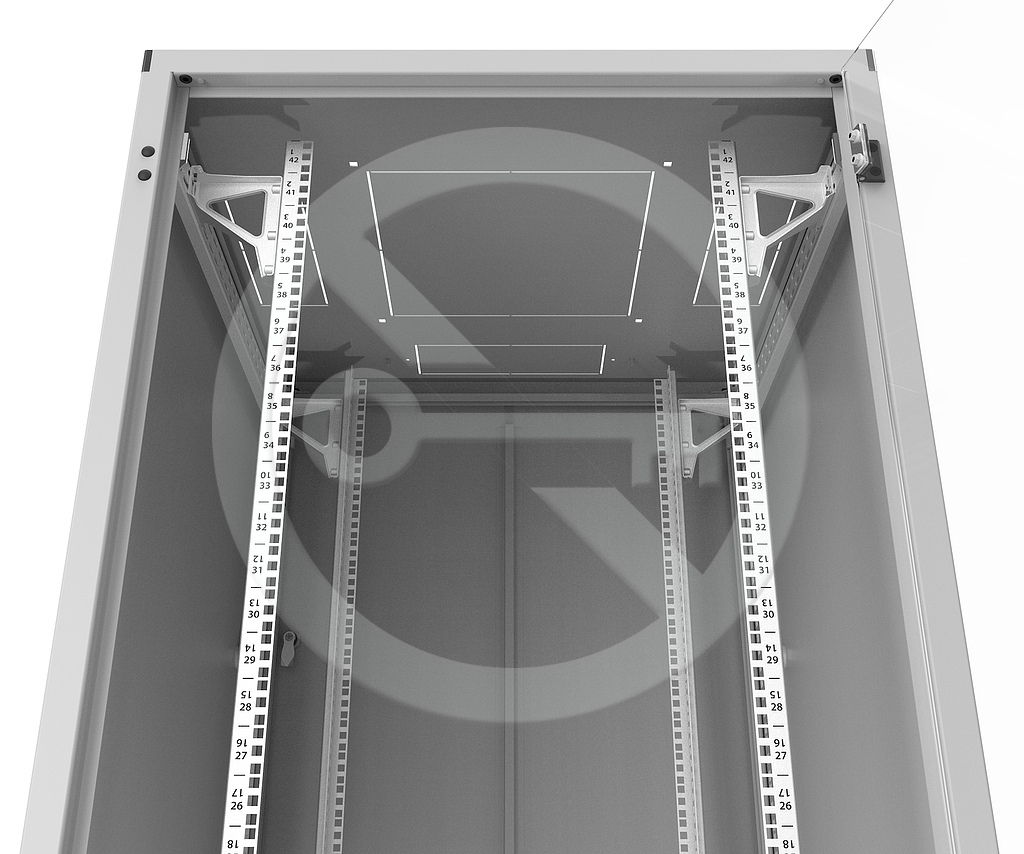 Wewnętrzne części montażowe, takie jak pionowe szyny 19"i ścianki działowe, są pokryte warstwą stopu Al-Zn.