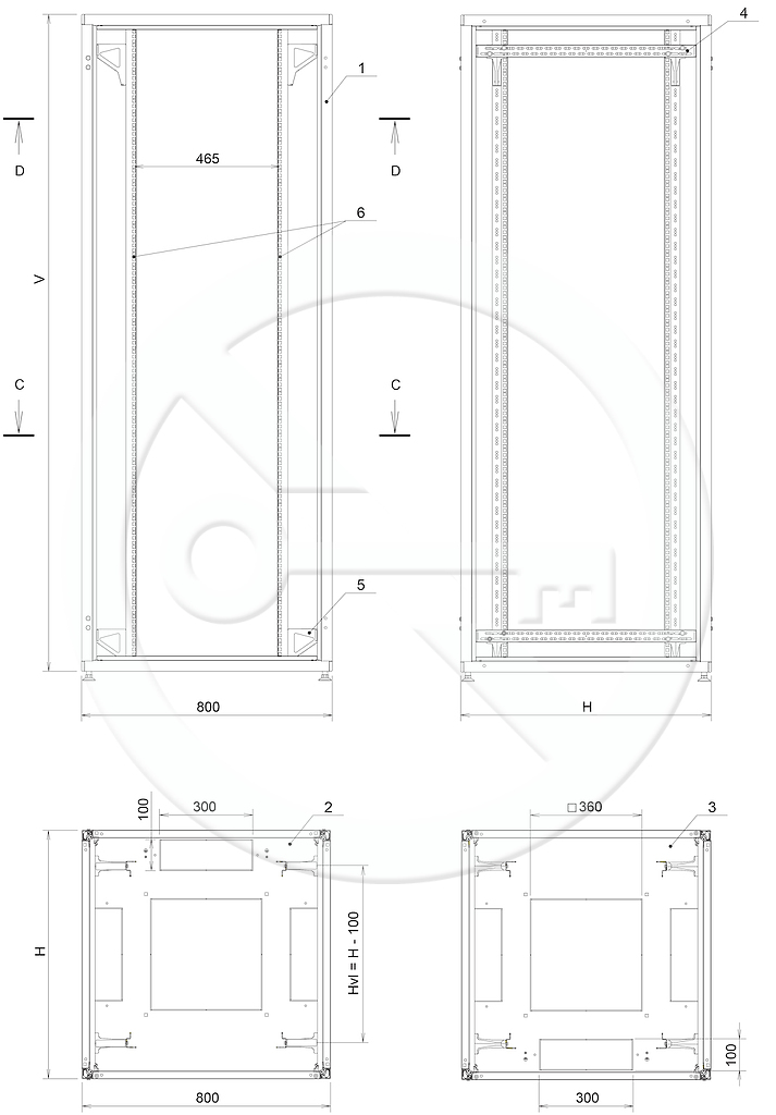 W suficie i w podłodze znajdują się otwory do wprowadzania kabli i wylot gorącego powietrza są zamknięte wymiennymi zaślepkami. Zaślepki mogą być usuwane z otworów poprzez przecięcie mostków, które łączą je z dnem lub sufitem szafy. Otwory do odprowadzania ciepłego powietrza, są przystosowane do montażu systemu wentylacyjnego VI-2, 4 lub 6. Otwory kablowe pozwalają na wprowadzenie kabli zasilających zakończonych wtyczką trójfazową.