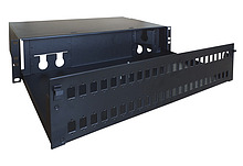 Kolejnym produktem w grupie przełącznic jest przełącznica 2U. Jej konstrukcja jest identyczna jak standardowych przełącznic Solarix - posiada część wysuwaną z miejscem na panele. Standardowe panele posiadają otwory na adaptery LC, SC lub ST. Na specjalne zamówienie możliwe jest dostarczenie paneli z customizowanymi otworami.