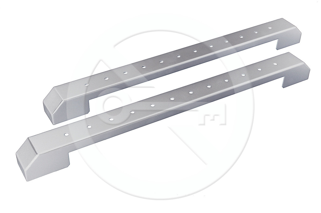 Zestaw nóżek do ramy wystawowej. Otwory umożliwiają montaz ramy w różnej pozycji, do zezstawu można zamocować dwie ramy wystawowe.
