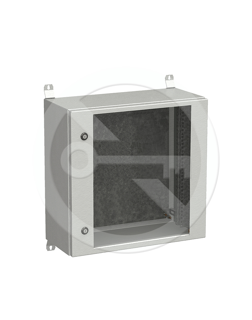 Rozdzielnica składa się z samonośnej konstrukcji spawanej z blachy o grubości 1,5 mm, która jest przystosowana do montażu naściennego za pomocą czterech dołączonych zawiasów. Drzwi zabezpieczone są przed otwarciem zamkami cylindrycznymi jednopunktowymi lub zamkiem trzypunktowym, klamką składaną z wkładką. Po wewnętrznej stronie drzwiczek przyspawane są dwie pionowe, perforowane ramy, które zwiększają sztywność i jednocześnie służą do odwiązywania i mocowania wyposażenia szafy. Połączenie uziemienia szafy wykonane jest nowoczesną technologią zgrzewania pojemnościowego śrubami metalizowanymi. Drzwi są uszczelnione za pomocą technologii uszczelnienia odlewanego. Urządzenia można montować w szafie na szynach 19" wykonanych z blachy ocynkowanej. W tylnej części szafy znajduje się również panel montażowy wykonany z blachy ocynkowanej gr. 2 mm. Szyny 19" oraz panel montażowy regulowany w sposób ciągły na wymaganą głębokość w szafie. Jeśli konieczne jest wbudowanie go w ścianę, rozdzielnicę można uzupełnić ramą natynkową.
