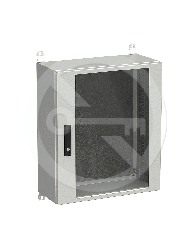 Rozdzielnica składa się z samonośnej konstrukcji spawanej z blachy o grubości 1,5 mm, która jest przystosowana do montażu naściennego za pomocą czterech dołączonych zawiasów. Drzwi zabezpieczone są przed otwarciem zamkami cylindrycznymi jednopunktowymi lub zamkiem trzypunktowym, klamką składaną z wkładką. Po wewnętrznej stronie drzwiczek przyspawane są dwie pionowe, perforowane ramy, które zwiększają sztywność i jednocześnie służą do odwiązywania i mocowania wyposażenia szafy. Połączenie uziemienia szafy wykonane jest nowoczesną technologią zgrzewania pojemnościowego śrubami metalizowanymi. Drzwi są uszczelnione za pomocą technologii uszczelnienia odlewanego. Urządzenia można montować w szafie na szynach 19 "wykonanych z blachy ocynkowanej. W tylnej części szafy znajduje się również panel montażowy wykonany z blachy ocynkowanej gr. 2 mm. Szyny 19" oraz panel montażowy regulowany w sposób ciągły na wymaganą głębokość w szafie. Jeśli konieczne jest wbudowanie go w ścianę, rozdzielnicę można uzupełnić ramą natynkową.