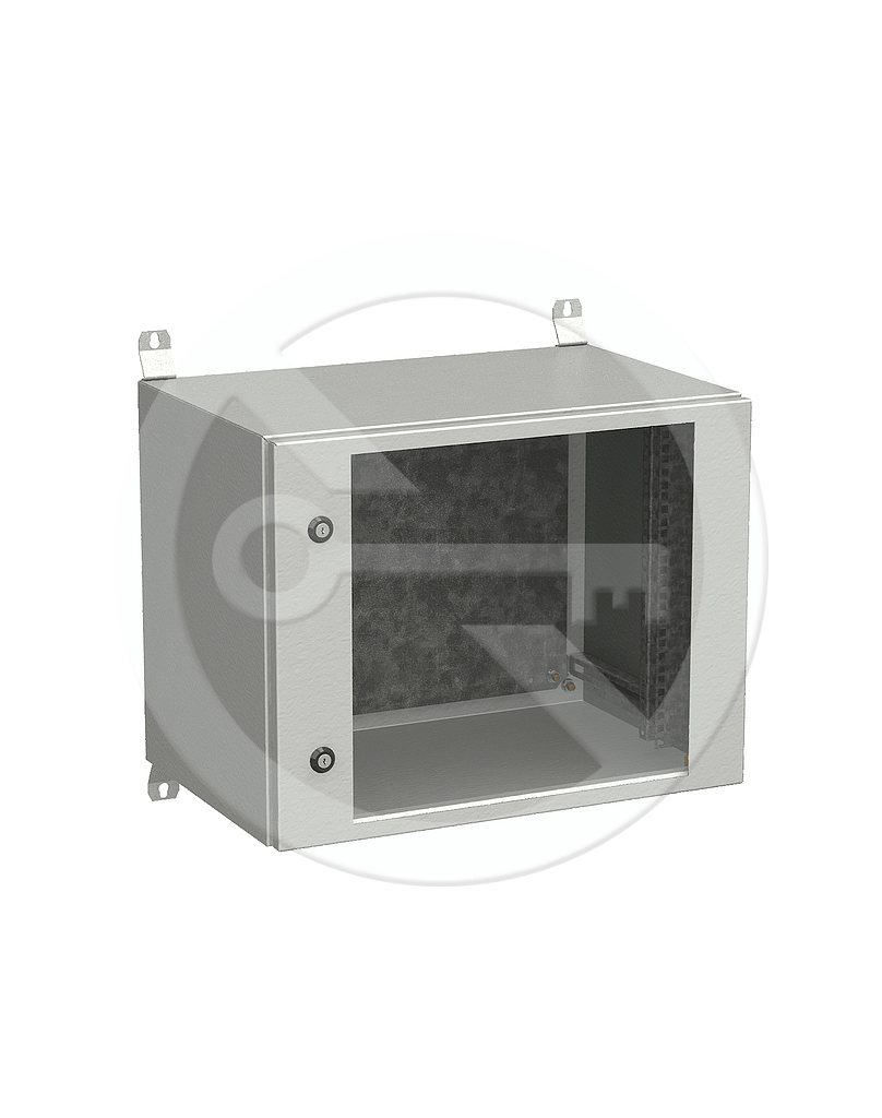 Rozdzielnica składa się z samonośnej konstrukcji spawanej z blachy o grubości 1,5 mm, która jest przystosowana do montażu naściennego za pomocą czterech dołączonych zawiasów. Drzwi zabezpieczone są przed otwarciem zamkami cylindrycznymi jednopunktowymi lub zamkiem trzypunktowym, klamką składaną z wkładką. Po wewnętrznej stronie drzwiczek przyspawane są dwie pionowe, perforowane ramy, które zwiększają sztywność i jednocześnie służą do odwiązywania i mocowania wyposażenia szafy. Połączenie uziemienia szafy wykonane jest nowoczesną technologią zgrzewania pojemnościowego śrubami metalizowanymi. Drzwi są uszczelnione za pomocą technologii uszczelnienia odlewanego. Urządzenia można montować w szafie na szynach 19 "wykonanych z blachy ocynkowanej. W tylnej części szafy znajduje się również panel montażowy wykonany z blachy ocynkowanej gr. 2 mm. Szyny 19" oraz panel montażowy regulowany w sposób ciągły na wymaganą głębokość w szafie. Jeśli konieczne jest wbudowanie go w ścianę, rozdzielnicę można uzupełnić ramą natynkową.