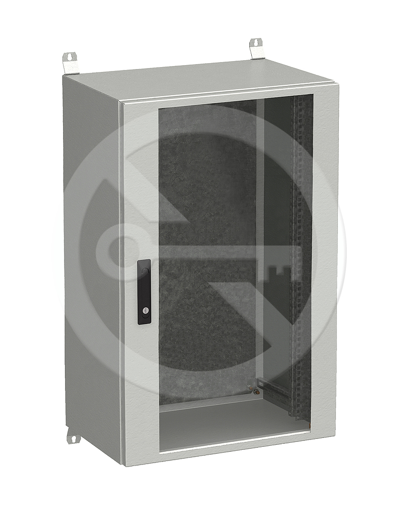 Rozdzielnica składa się z samonośnej konstrukcji spawanej z blachy o grubości 1,5 mm, która jest przystosowana do montażu naściennego za pomocą czterech dołączonych zawiasów. Drzwi zabezpieczone są przed otwarciem zamkami cylindrycznymi jednopunktowymi lub zamkiem trzypunktowym, klamką składaną z wkładką. Po wewnętrznej stronie drzwiczek przyspawane są dwie pionowe, perforowane ramy, które zwiększają sztywność i jednocześnie służą do odwiązywania i mocowania wyposażenia szafy. Połączenie uziemienia szafy wykonane jest nowoczesną technologią zgrzewania pojemnościowego śrubami metalizowanymi. Drzwi są uszczelnione za pomocą technologii uszczelnienia odlewanego. Urządzenia można montować w szafie na szynach 19 "wykonanych z blachy ocynkowanej. W tylnej części szafy znajduje się również panel montażowy wykonany z blachy ocynkowanej gr. 2 mm. Szyny 19" oraz panel montażowy regulowany w sposób ciągły na wymaganą głębokość w szafie. Jeśli konieczne jest wbudowanie go w ścianę, rozdzielnicę można uzupełnić ramą natynkową.