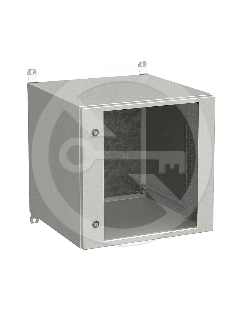 Rozdzielnica składa się z samonośnej konstrukcji spawanej z blachy o grubości 1,5 mm, która jest przystosowana do montażu naściennego za pomocą czterech dołączonych zawiasów. Drzwi zabezpieczone są przed otwarciem zamkami cylindrycznymi jednopunktowymi lub zamkiem trzypunktowym, klamką składaną z wkładką. Po wewnętrznej stronie drzwiczek przyspawane są dwie pionowe, perforowane ramy, które zwiększają sztywność i jednocześnie służą do odwiązywania i mocowania wyposażenia szafy. Połączenie uziemienia szafy wykonane jest nowoczesną technologią zgrzewania pojemnościowego śrubami metalizowanymi. Drzwi są uszczelnione za pomocą technologii uszczelnienia odlewanego. Urządzenia można montować w szafie na szynach 19 "wykonanych z blachy ocynkowanej. W tylnej części szafy znajduje się również panel montażowy wykonany z blachy ocynkowanej gr. 2 mm. Szyny 19" oraz panel montażowy regulowany w sposób ciągły na wymaganą głębokość w szafie. Jeśli konieczne jest wbudowanie go w ścianę, rozdzielnicę można uzupełnić ramą natynkową.