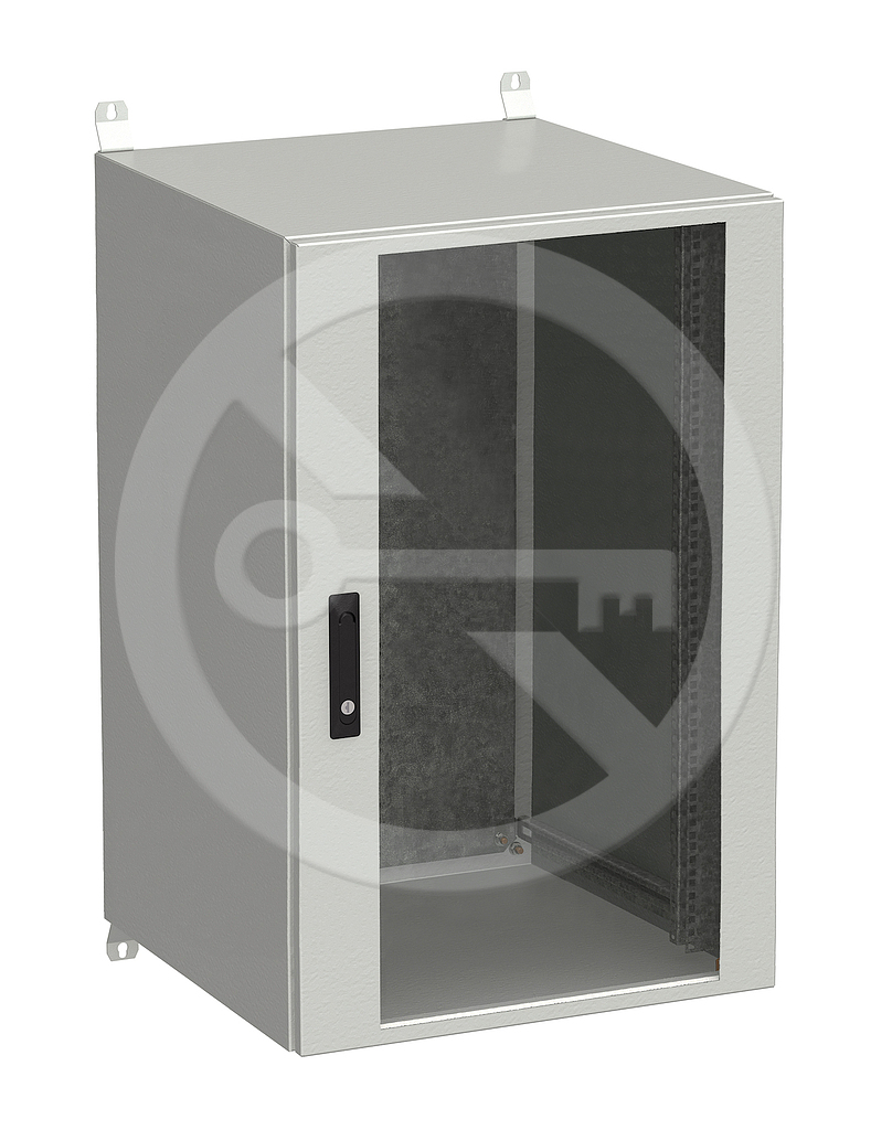 Rozdzielnica składa się z samonośnej konstrukcji spawanej z blachy o grubości 1,5 mm, która jest przystosowana do montażu naściennego za pomocą czterech dołączonych zawiasów. Drzwi zabezpieczone są przed otwarciem zamkami cylindrycznymi jednopunktowymi lub zamkiem trzypunktowym, klamką składaną z wkładką. Po wewnętrznej stronie drzwiczek przyspawane są dwie pionowe, perforowane ramy, które zwiększają sztywność i jednocześnie służą do odwiązywania i mocowania wyposażenia szafy. Połączenie uziemienia szafy wykonane jest nowoczesną technologią zgrzewania pojemnościowego śrubami metalizowanymi. Drzwi są uszczelnione za pomocą technologii uszczelnienia odlewanego. Urządzenia można montować w szafie na szynach 19 "wykonanych z blachy ocynkowanej. W tylnej części szafy znajduje się również panel montażowy wykonany z blachy ocynkowanej gr. 2 mm. Szyny 19" oraz panel montażowy regulowany w sposób ciągły na wymaganą głębokość w szafie. Jeśli konieczne jest wbudowanie go w ścianę, rozdzielnicę można uzupełnić ramą natynkową.
