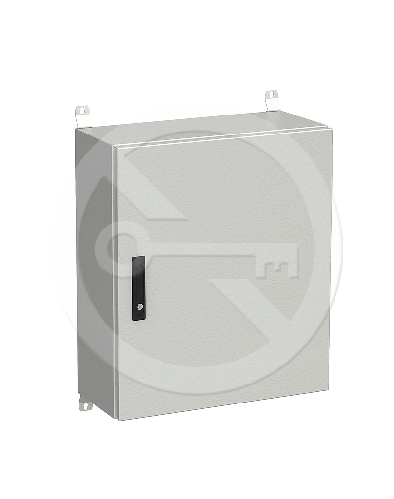 Rozdzielnica składa się z samonośnej konstrukcji spawanej z blachy o grubości 1,5 mm, która jest przystosowana do montażu naściennego za pomocą czterech dołączonych zawiasów. Drzwi zabezpieczone są przed otwarciem zamkami cylindrycznymi jednopunktowymi lub zamkiem trzypunktowym, klamką składaną z wkładką. Po wewnętrznej stronie drzwiczek przyspawane są dwie pionowe, perforowane ramy, które zwiększają sztywność i jednocześnie służą do odwiązywania i mocowania wyposażenia szafy. Połączenie uziemienia szafy wykonane jest nowoczesną technologią zgrzewania pojemnościowego śrubami metalizowanymi. Drzwi są uszczelnione za pomocą technologii uszczelnienia odlewanego. Urządzenia można montować w szafie na szynach 19 "wykonanych z blachy ocynkowanej. W tylnej części szafy znajduje się również panel montażowy wykonany z blachy ocynkowanej gr. 2 mm. Szyny 19" oraz panel montażowy regulowany w sposób ciągły na wymaganą głębokość w szafie. Jeśli konieczne jest wbudowanie go w ścianę, rozdzielnicę można uzupełnić ramą natynkową.